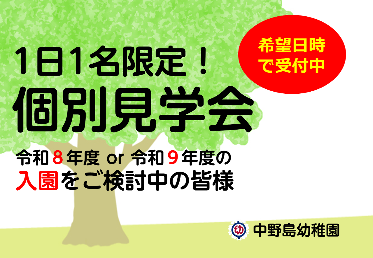 個別に説明会を行いますので、ご入園をお考えの方は、お申し込みください。希望日がある場合は、備考欄に記入して下さい。
