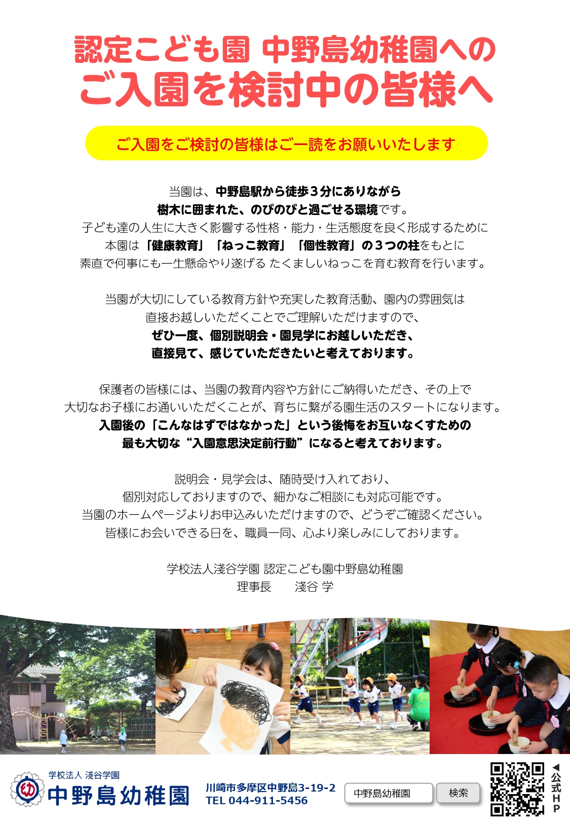 個別に説明会を行いますので、ご入園をお考えの方は、お申し込みください。希望日がある場合は、備考欄に記入して下さい。